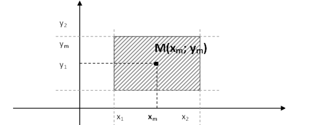 1. Модель. Випадкова точка на площині – це точка з двома випадковими координатами. Отже, необхідно згенерувати два випадкових числа з потрібного проміжку. Відповідно до задачі, випадкова координата xm повинна належати проміжку [х1; х2], координата ym – проміжку [y1; y2].